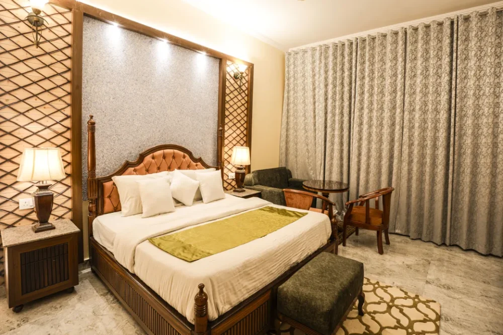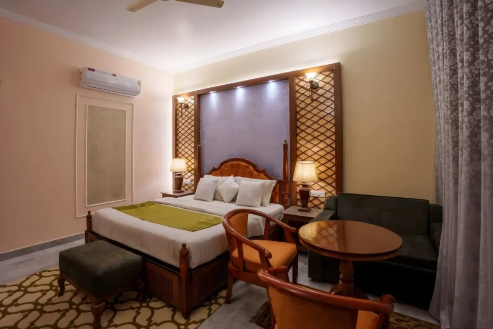 Step into a realm of timeless charm. The Heritage Rooms are adorned with intricate carvings, period-inspired furniture, and warm, luxurious fabrics, reflecting the palace’s royal roots.